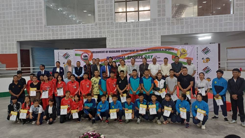 In commemoration of National Sports Day 2024, the Department of Youth Resources & Sports, Government of Nagaland, today conferred cash award to 360 meritorious sportspersons at the glittering ceremony held at Indira Gandhi Stadium, Kohima.
