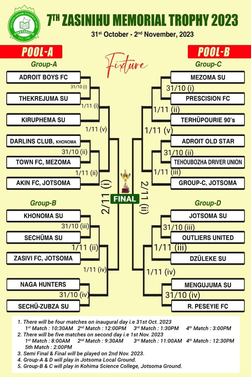 The 7th Zasinihu Memorial Trophy cum 1st WASU Women's Volleyball Tournament will be held from October 31 to November 2 at Jotsoma Local Ground & Kohima Science College, Jotsoma.