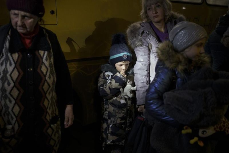 Internally displaced people from Mariupol and nearby towns arrive in Zaporizhzhia, Ukraine, Friday, April 1, 2022. (AP Photo/Felipe Dana)