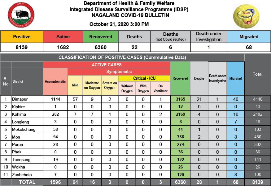 Nagaland now has 1,682 active COVID-19 cases, while 6,360 people have recovered from the disease, the health department’s Integrated Disease Surveillance Programme reported in its daily bulletin.