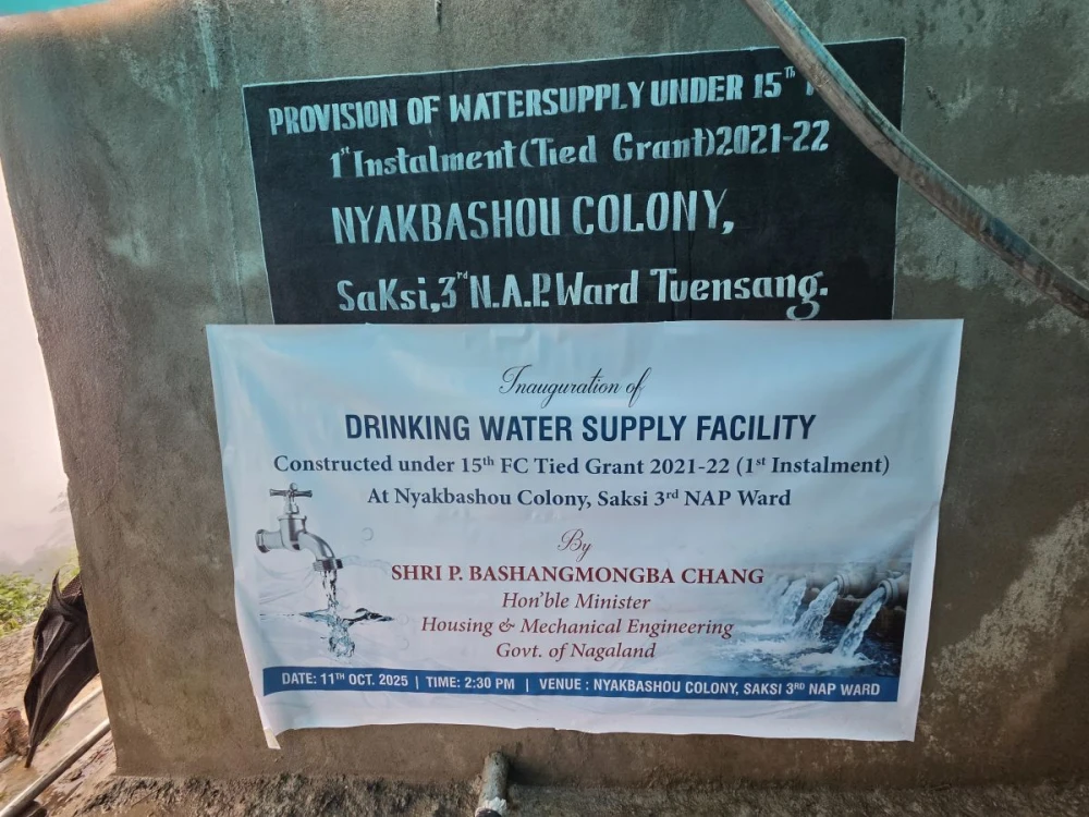 A newly constructed drinking water supply facility at Nyakbashou Colony under Saksi 3rdNAP Ward, Tuensang, was inaugurated on Saturday by P. Bashangmongba Chang, Minister for Housing and Mechanical Engineering, Government of Nagaland. The project was implemented under the 15th Finance Commission (FC) Tied Grant for the financial year 2021–22 (1stinstalment).