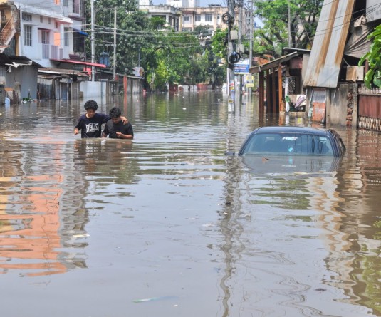 The Brahmaputra river is flowing above the danger mark at Neamatighat in Jorhat, Tezpur in Sonitpur, Goalpara town in Goalpara and Dhubri town in Dhubri districts.