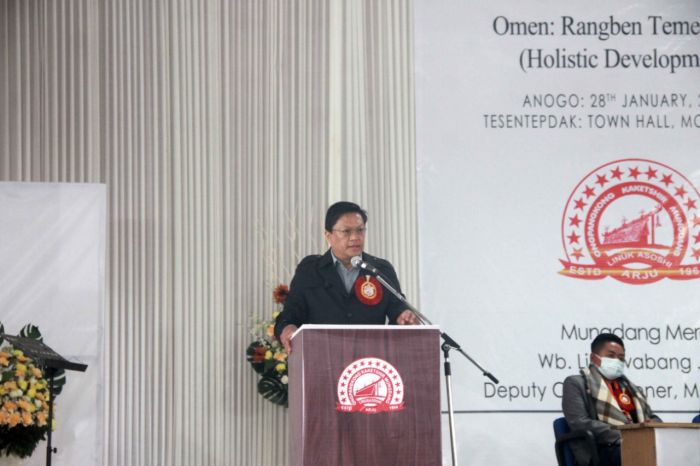 Deputy Commissioner of Mokokchung Limawabang Jamir addressing the 38th general conference of OKM at Town Hall, Mokokchung on January 28.