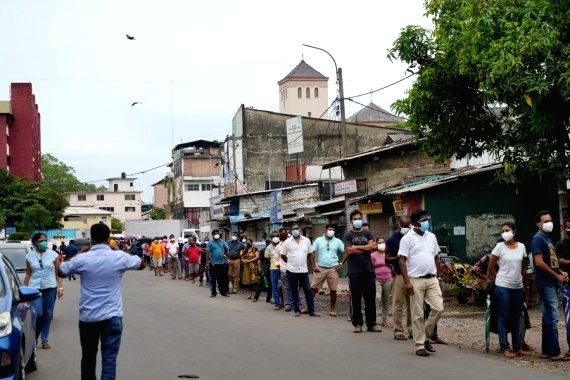 People queue up to receive COVID-19 vaccines outside a vaccination center in Sri Lanka's capital Colombo. (IANS File Photo)