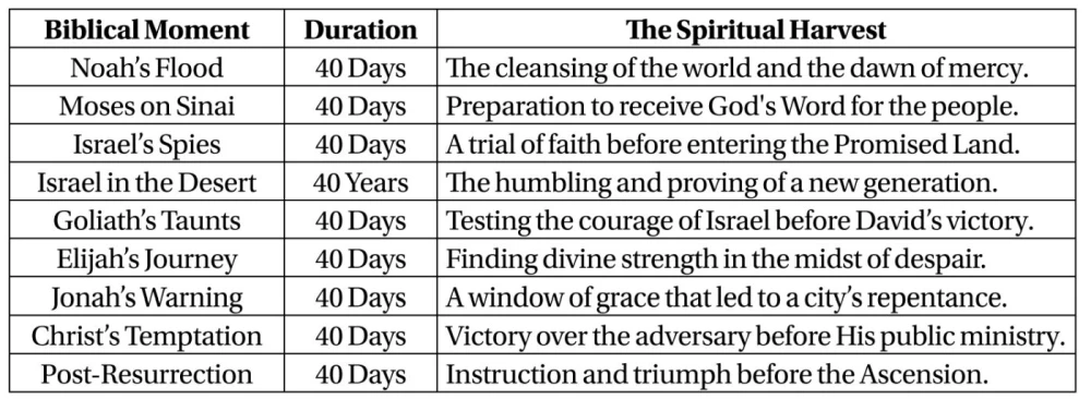 Throughout salvation history, God has used the “forty days” to prepare His people for a new beginning. We see this in the Great Deluge, where forty days of rain cleansed the earth for a new covenant with Noah. We see it in Moses, who spent forty days atop Mount Sinai, neither eating bread nor drinking water, to prepare his heart to receive the Law of God. And we see it in the prophet Elijah, who, strengthened by divine food, walked forty days to Horeb to hear the “still small voice” of the Almighty.