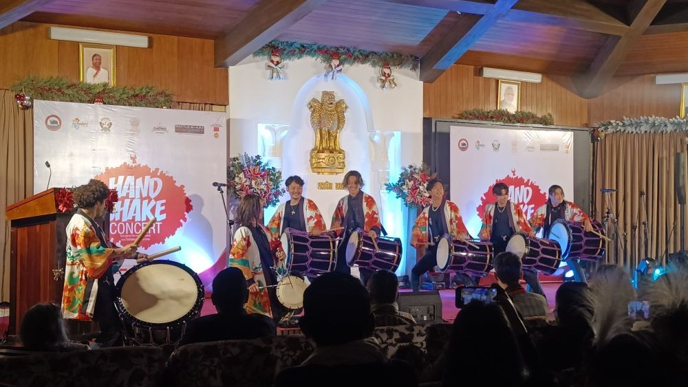 Artists who performed at the Raj Bhavan Handshake Concert included Drum Tao, a world renowned Japanese percussion group founded in 1993, the Sao Mao Woisari Arts & Cultural Society that performed the Peacock Dance of Arunachal Pradesh, Jawaharlal Nehru Manipur Dance Academy (JNMDA) under the North East Zone Cultural Centre, Naga Terries Band Head Hunters, Nagaland Police Auxiliary Brass Band, Seyie Intrepid, Hentok Konyak, Mhasheseno, Nagagenous and Nagaland Conservatory of Music.