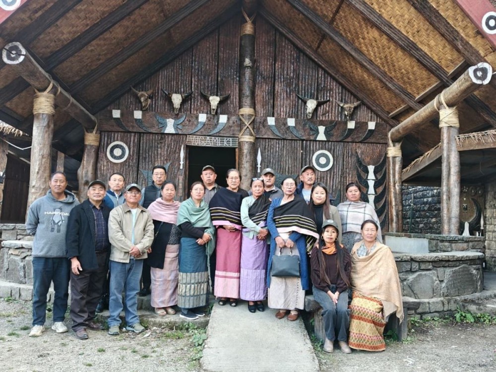 SAPO executives, SAWO members, and the APO Attires Committee with author Chozhüle Kikhi during the release of ‘A Resource Book on Skill Enhancement’ at the Naga Heritage Village, Kisama, on November 22. (Morung Photo)