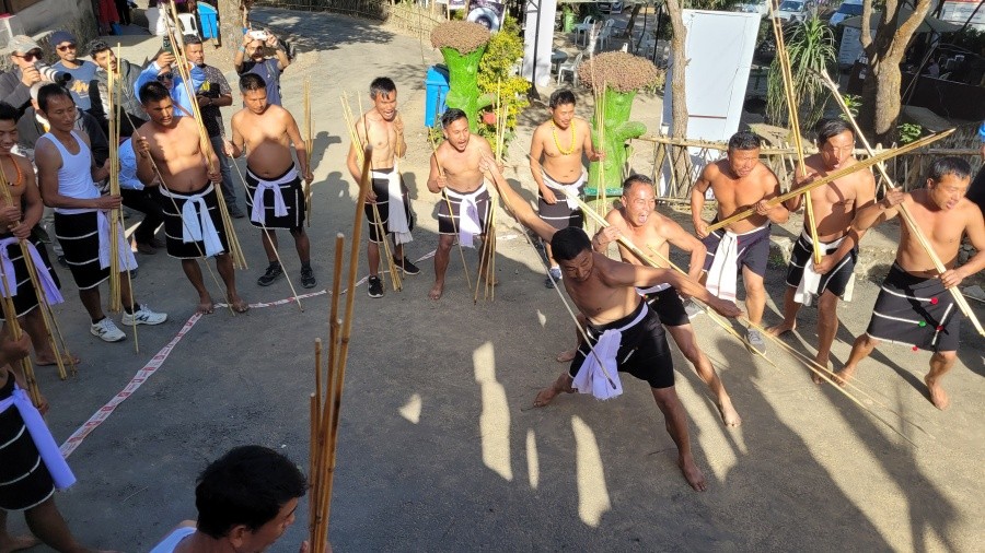Kezoma village representing Angami Naga performed Luda & Thulo (Traditional Games) on Day 5 of Cultural Connect at Hornbill Festival 2022 in Kisama. The two most common indigenous games of Southern Angami villages are ‘Luda’ and ‘Thulo.’ Luda is the indigenous game played solely by the men folk of the village. Luda game is played for entertainment, to develop a sense of brotherhood and also to develop strong arms.