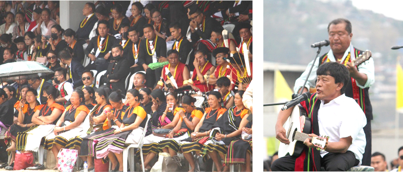(Left) A section of the gathering. (Right) Methaneilie Jütakhrie presenting a special performance during the celebration. (Photo Courtesy: Ozünglemba Jamir)