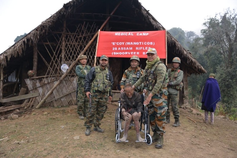 Tuensang Battalion of Assam Rifles under the aegis of HQ IGAR (North) handed over a wheelchair to a 110-year-old man from a remote border village in Wangti region of Mon district on January 19. According to updates from HQ IGAR (N), a medical camp was organised to provide medical support and assistance to the villagers, especially the old, differently-abled, orphans and women who are unable to go to the hospitals at far distances. A total of 56 villagers benefitted from the camp where free medicines were provided along with information about the importance of timely vaccination, personal hygiene and sanitation. (Photo Courtesy: HQ IGAR - N)