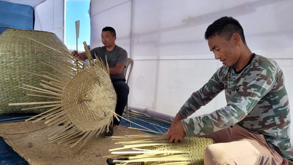 Artisans demonstrate weaving of bamboo basket at during the Hornbill Festival, held annually at Naga Heritage Village, Kisama from December 1-10. (Morung File Photo)
