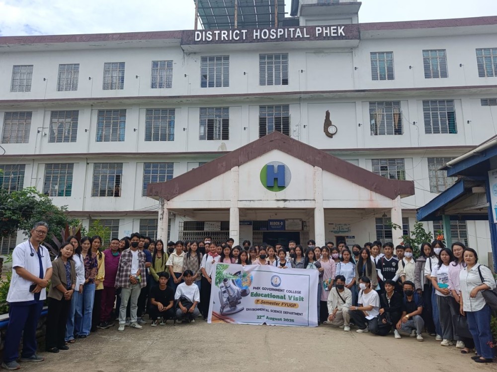Phek, August 24 (MExN): The Environmental Sciences Department, under the leadership of its Head of Department, Vilhoutuonuo Theunuo, organized an educational visit for the 1st Semester (BA & BSc) students to Phek District Hospital on August 22 as part of their curriculum on Environmental Waste Management. The visit was aimed at exposing students to practical applications of waste segregation, treatment, and disposal techniques beyond classroom learning.