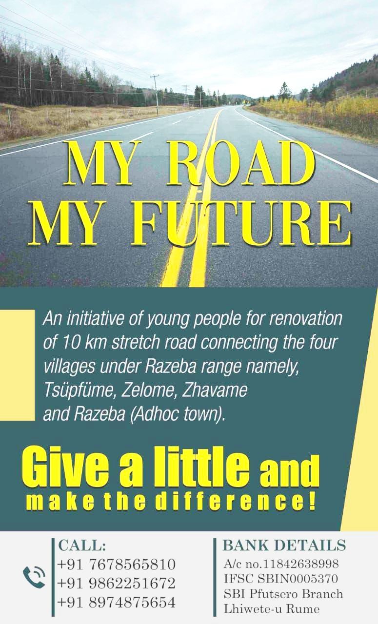In what they describe as ‘My Road, My Future’, this group of young people are looking at crowd funding to repair the deplorable 10-kilometre stretch of road from Pfütsero to Zhavame village, that serves as the only lifeline for a population of about 8000 people in the area.