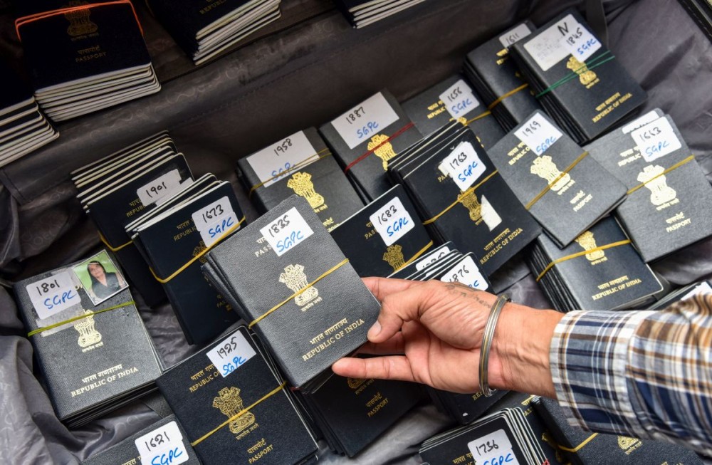 Amritsar: A Shiromani Gurdwara Parbandhak Committee (SGPC) official distributes passports to Sikh pilgrims ahead of their visit to Pakistan to celebrate the 556th birth anniversary of Sri Guru Nanak Dev, in Amritsar, Friday, October 31, 2025. (IANS/Prabhjot Singh Gill)