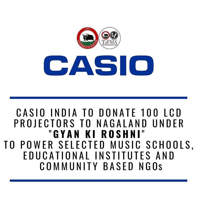 Casio India has announced to donate 100 LCD projectors to Nagaland under “Gyan Ki Roshni.” Task Force for Music and Arts (TaFMA) advisor Theja Meru informed that such gesture is to power selected Music schools, educational institutions and community based NGOs.