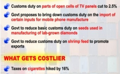 New Delhi, February 1 (IANS): Paying heed to the consumer electronics industry's demand, the Centre on Wednesday reduced basic Customs duty (BCD) on import of certain mobile phone parts and inputs like came