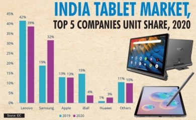 New Delhi, February 26 (IANS): India tablet market recorded 14.7 per cent (YoY) growth with 2.8 million unit shipment in 2020, with Lenovo maintaining its lead with 6.6% growth in its shipments over 2019, an ID