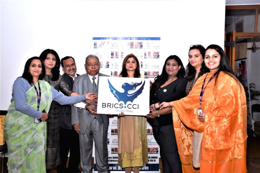 BRICS CCI Director General BBL Madhukar with representatives of the newly launched BRICS CCI Women’s Wing in New Delhi on March 4. (IANS Photo)