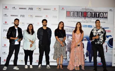 New Delhi, August 3 (IANS) Actors Akshay Kumar, Vaani Kapoor and Lara Dutta arrived here on Tuesday to launch the trailer of their film 'Bell Bottom'.