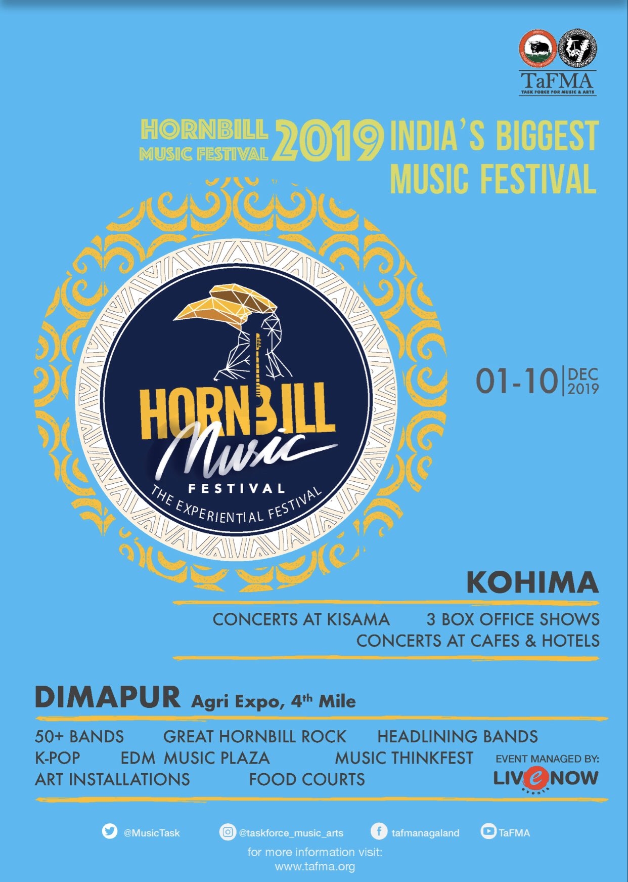 The Task Force for Music & Arts (TaFMA) today unveiled the ‘itinerary’ for the upcoming ‘Hornbill Music Festival - the Experiential Festival.’