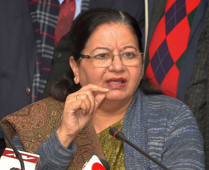 Jamia Millia Islamia Vice-Chancellor Najma Akhtar addresses a press conference regarding police action against students on Sunday at the university campus in New Delhi. Photograph: Kamal Kishore/PTI Photo