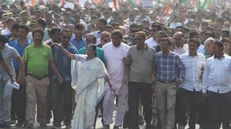 Kolkata, December 16 (IANS) With thousands joining in, West Bengal Chief Minister and Trinamool Congress supremo Mamata Banerjee on Monday led a huge protest march against the NRC and the CAA through the heart