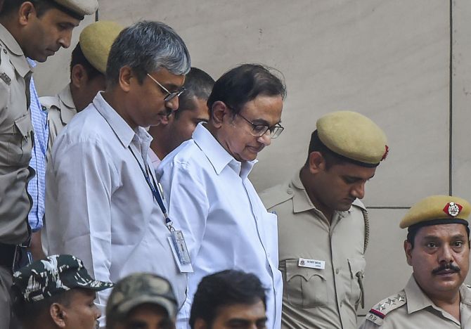 Congress leader P Chidambaram after being produced at Rouse Avenue Court in connection with INX media case, in New Delhi. Photograph: Kamal Kishore/PTI Photo