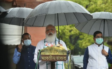 New Delhi, July 19 (PTI): Prime Minister Narendra Modi on Monday could not introduce his newly-inducted union ministers to the Rajya Sabha as several slogan-shouting opposition members trooped into the wel