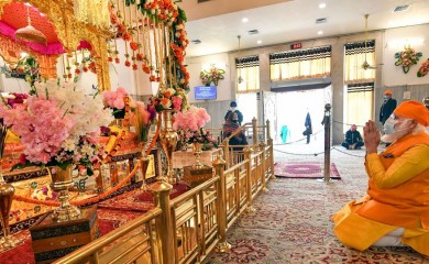 New Delhi, December 20 (IANS): Prime Minister Narendra Modi on Sunday made a surprise visit to the Gurudwara Rakabganj here early morning and paid tributes to Guru Tegh Bahadur for his supreme sacrifice, expres