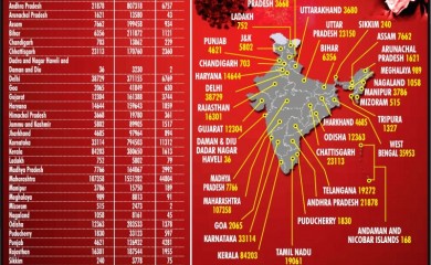 New Delhi, November 6 (IANS): With a fresh spike of 47,638 coronavirus infections and 670 deaths in 24 hours, India's tally on Friday rose to 84,11,724, said the Union Ministry of Health and Family Welfare.