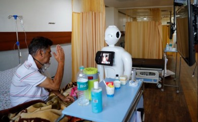 NEW DELHI, September 18 (Reuters) - A hospital in India has deployed a customer-service robot to patrol its wards, connecting coronavirus patients to friends and relatives.
