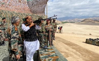 New Delhi/Leh, July 17 (IANS) Defence Minister Rajnath Singh reached the eastern Ladakh region on Friday to review the ground situation of troops at the hostile border areas with China. Singh will also interact