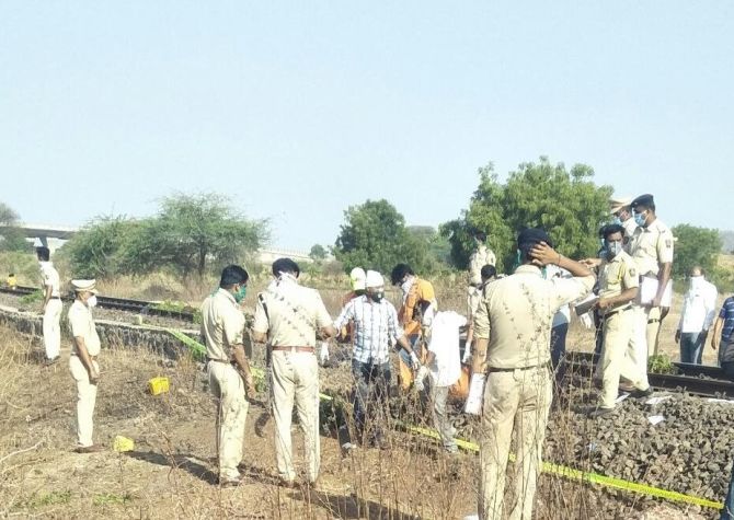 The workers were walking along rail tracks to their home state Madhya Pradesh. Photograph: ANI