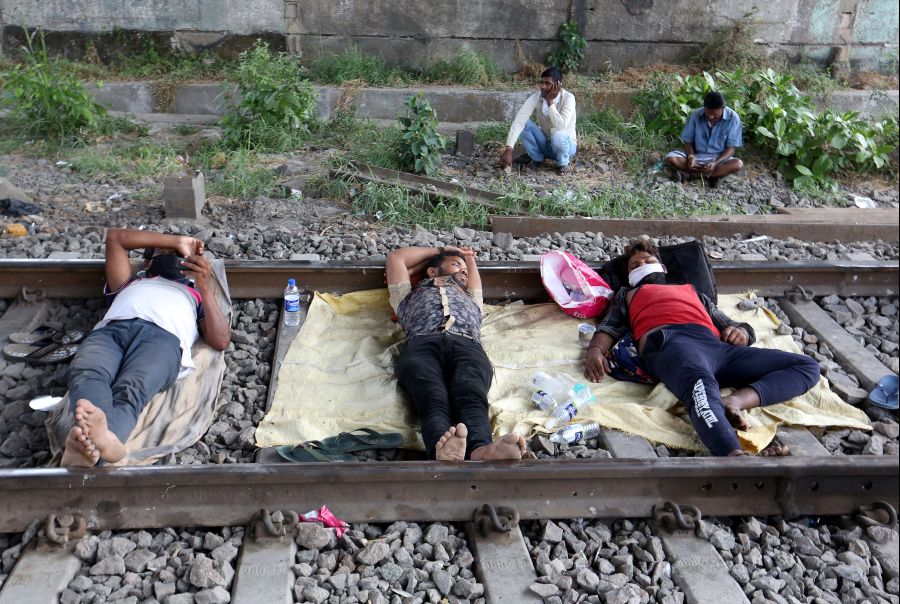 Migrant workers rest on a railway track during a 21-day nationwide lockdown to slow the spreading of coronavirus disease (COVID-19) in in Mumbai on April 2, 2020. (REUTERS Photo)