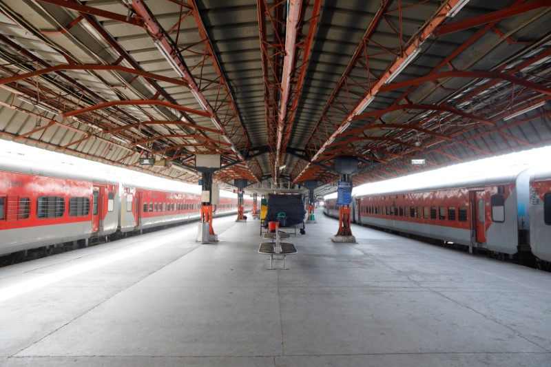 A view shows a deserted platform at a railway station during lockdown by the authorities to limit the spreading of coronavirus disease (COVID-19), in New Delhi, India March 23, 2020. REUTERS/Adnan Abidi