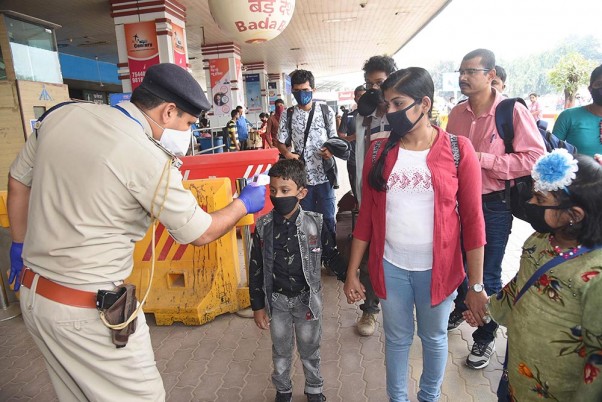 Passengers wearing masks in the wake of coronavirus pandemic being screened at Jai Prakash Narayan airport, in Patna. PTI Photo