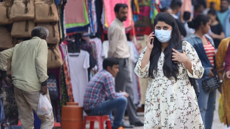 People wearing masks seen in crowded market in New Delhi, on March 19, 2020. (IANS Photo)