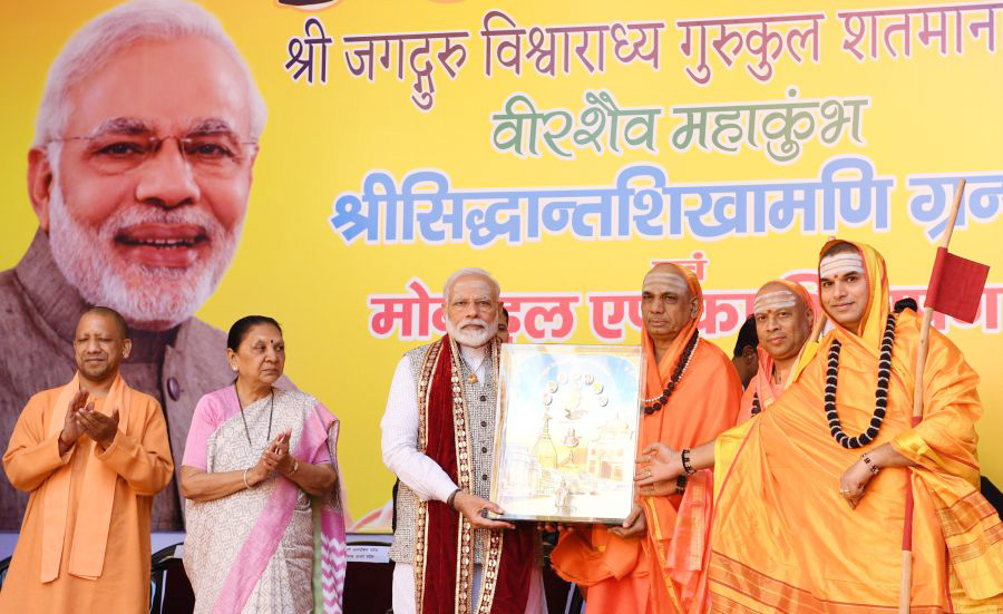 The Prime Minister, Narendra Modi attending the centenary celebrations of Shri Jagadguru Vishwaradhya Gurukul, at Varanasi, in Uttar Pradesh on February 16. (PIB Photo)