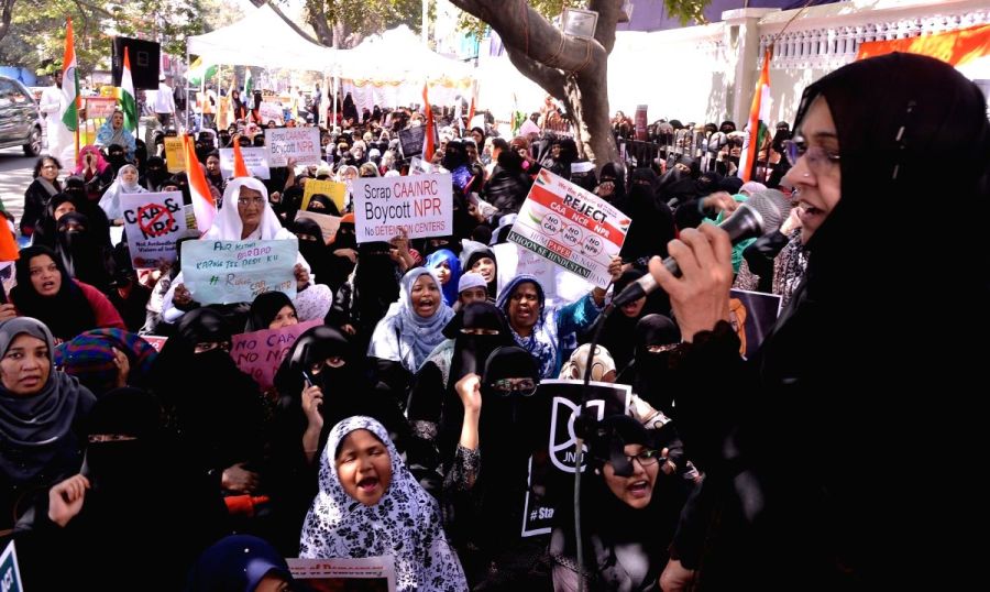 Bengaluru: Muslim women stage a sit-in demonstration against the Citizenship Amendment Act (CAA) 2019, in Bengaluru on January 24, 2020. (IANS File Photo)