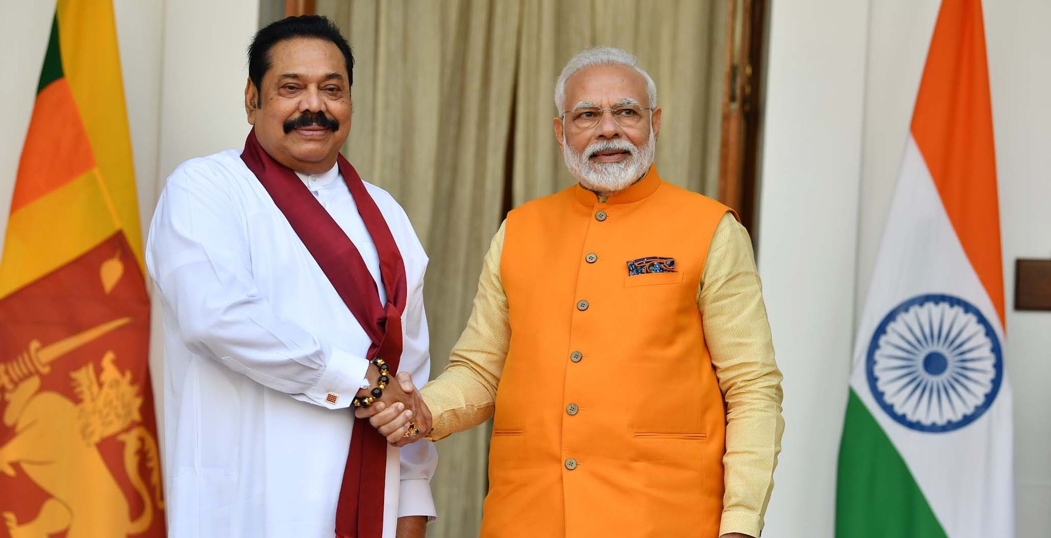 The Prime Minister, Narendra Modi with the Prime Minister of the Democratic Socialist Republic of Sri Lanka, Mahinda Rajapaksa, at Hyderabad House, in New Delhi on February 08, 2020. (PIB Photo)