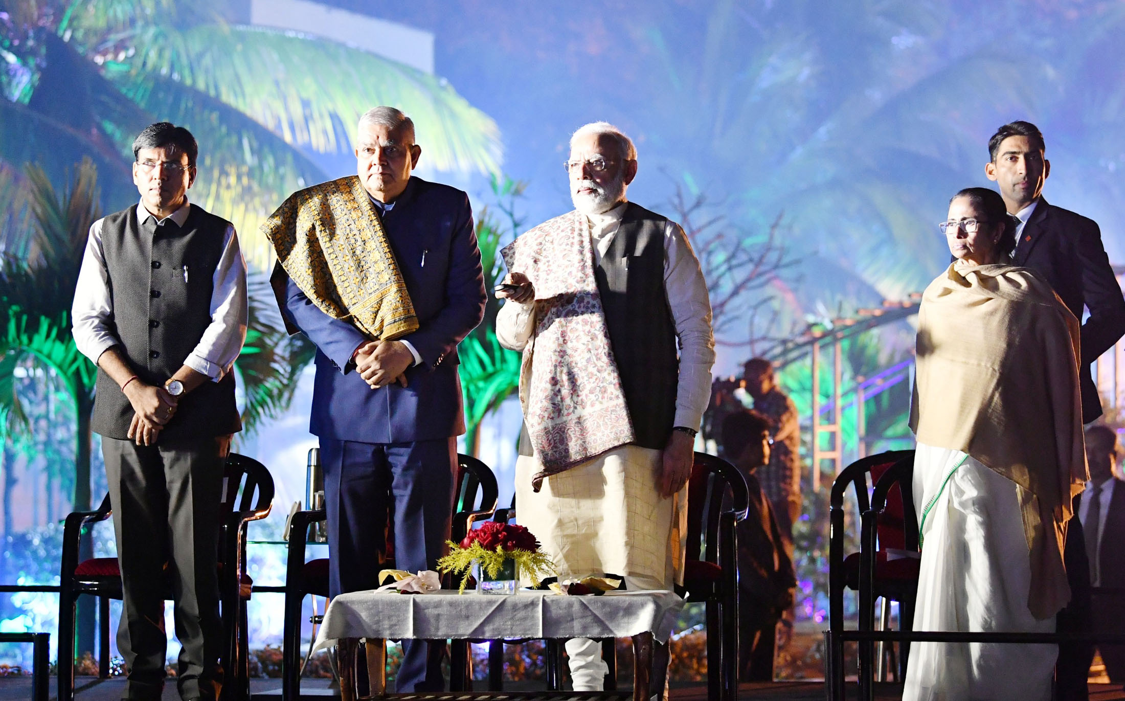 The Prime Minister, Narendra Modi launches the Interactive Light and Sound Show of Rabindra Setu, in Kolkata on January 11, 2020. The Governor of West Bengal, Jagdeep Dhankhar, the Chief Minister of