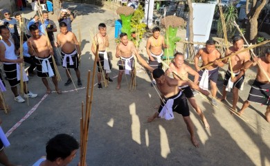 Sumi cultural troupe performed spear kicking on Day 5 of Cultural Connect at the ongoing Hornbill Festival 2022 at Kisama on December 5. Spear kicking is a traditional game played by forefathers. A spear in