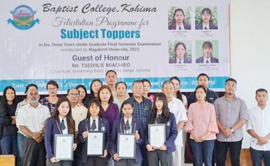 Kohima, July 17 (MExN): The Baptist College, Kohima held a felicitation programme for the subject toppers from the institution in the 3 years undergraduate final semester examination, 2022 conducted by Nagaland