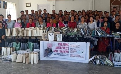 Kohima, July 16 (MExN): The Self Help Groups (SHGs) under the aegis of Nagaland State Rural Livelihood Mission (NRSLM) of Nerhema village conducted a one day awareness and training on making of paper bag and cl