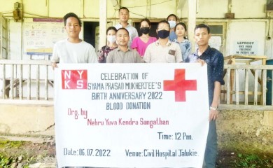Kohima, July 11 (MExN): In commemoration of the 121st Birth Anniversary of Dr Shyama Prasad Mukherjee, the Nehru Yuva Kendra Sangathan (NYKS) Nagaland organised blood donation drives across the state. In the st