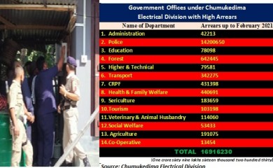 In Chümoukedima alone, 14 Govt offices owe over Rs 1.69 crore in power bills