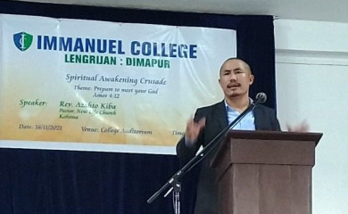 Dimapur, November 18 (MExN): The Immanuel College Dimapur organised a spiritual awakening crusade under the theme, "Prepare to meet your God" on November 16 with Rev Azahto Kiba, Pastor New Life Churc