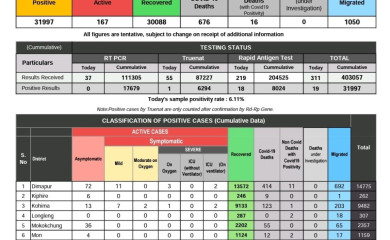 The sample positivity rate in Nagaland, after maintaining low rate in the recent past, surged to 6.11% on November 14 with the detection of 19 new COVID-19 cases ou