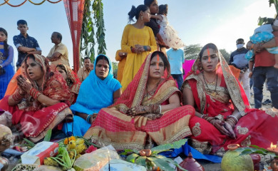 Chhath devotees performing rituals on the occasion of Chhath Puja organised by the Nagaland Bhojpuri Samaj on November 10 at Ura Villa Colony in Dimapur. The festival began on November 8 with the 'Nahai Kha