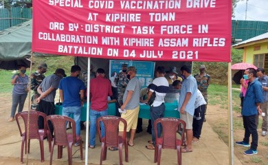 Kiphire, July 5 (MExN): The Kiphire District Task Force and in collaboration with Assam Rifles, Kiphire carried out a special vaccination drive on COVID-19 at Helipad ground, Kiphire and carried out sensitisati